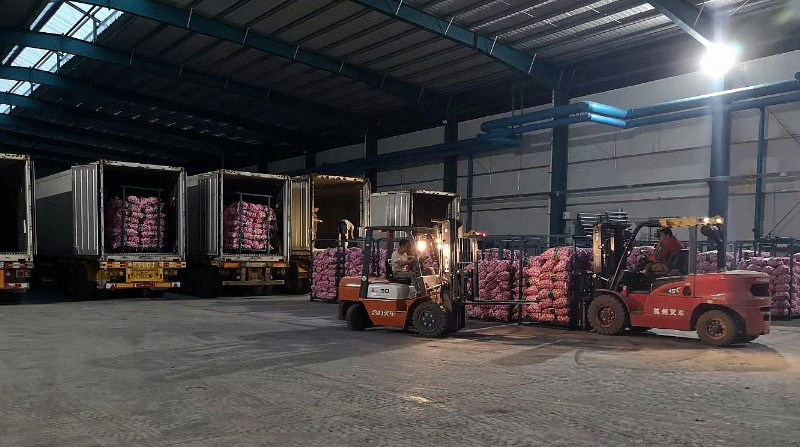 為保障全年穩定供應,水發和福隆采用分批次錯峰入庫與恒溫冷藏技術,依托現代化智能倉儲系統,科學調配來自不同產區的大蒜資源,有效平衡季節性供需波動,實現品質均一化管理;在此基礎上,通過實施“公司+基地+農戶”訂單農業模式,在國內外主要種植區科學布局原料基地,從源頭筑牢質量防線,打通了農產品生產的可追溯鏈條,確保貨源穩定、可控、可信賴;物流環節全面升級,構建起覆蓋全程的冷鏈物流體系,從原料出庫、精深加工到跨境運輸無縫銜接,大幅壓縮流通周期,顯著降低損耗率,真正實現了“從田間到餐桌”的可追溯與可控性。